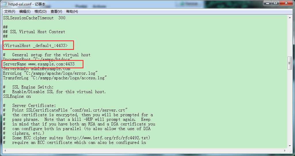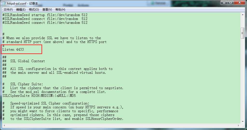 ../apache/conf/httpd-ssl.conf文件把端口443修改为4433