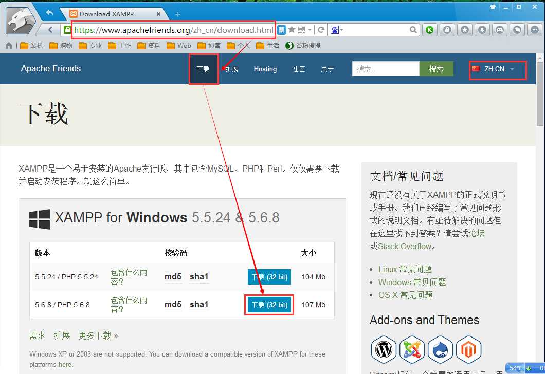 进入https://www.apachefriends.org/zh_cn/index.html页面下载XAMPP