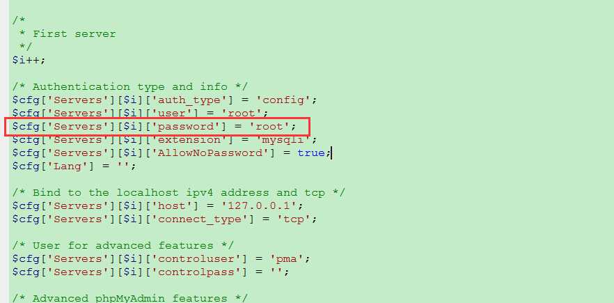 修改配置文件,..\phpMyAdmin\config.inc.php文件设置cfg[‘Servers′][i][‘password’]为对应的密码即可。
