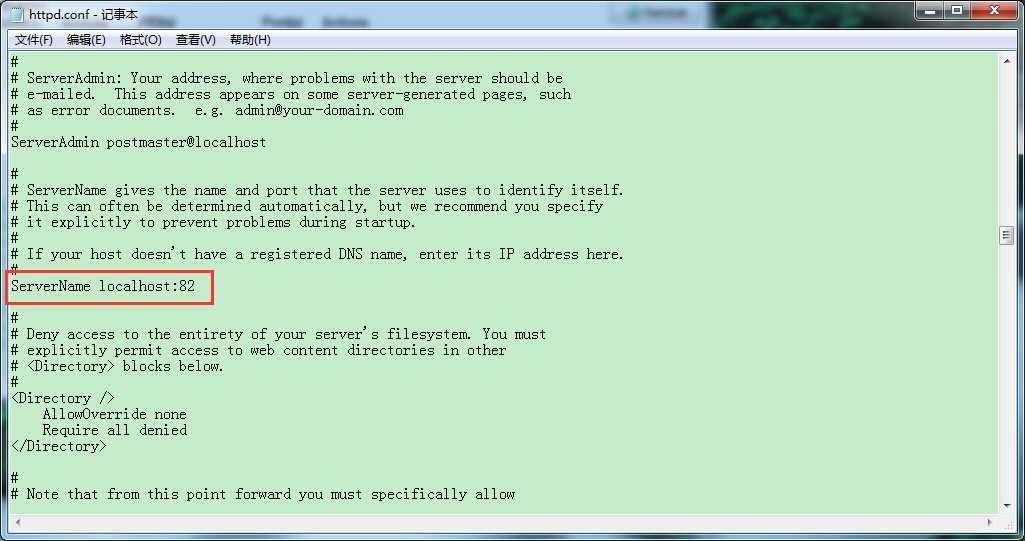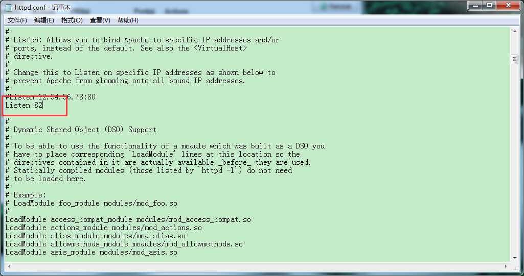 ../apache/conf/http.conf文件把端口80修改为82