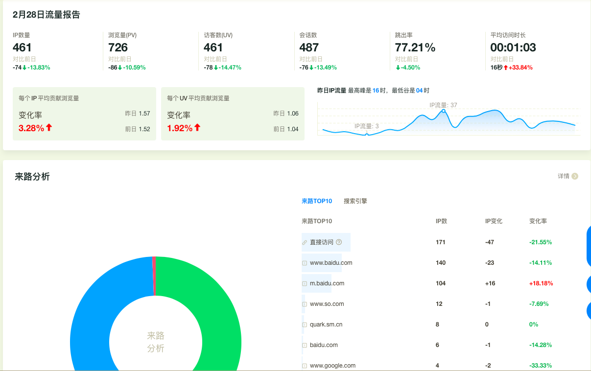 网站搜索引擎的流量近期是大幅上涨,原因是春节过后流量回暖,而通过流量来源最大的搜索词我们可以知道用户是从哪些词来到我们的网站,外部流量来源分析可以帮我们更清楚站外推广的效果,以及哪些网址导航站给我们贡献的流量更大。站内来源是百度统计最近新推出的一个实用功能,因为对于二级域名网站来说如果无法区分站内来源,可能会全部放在外部来源中进行统计,很显然这是不科学的。