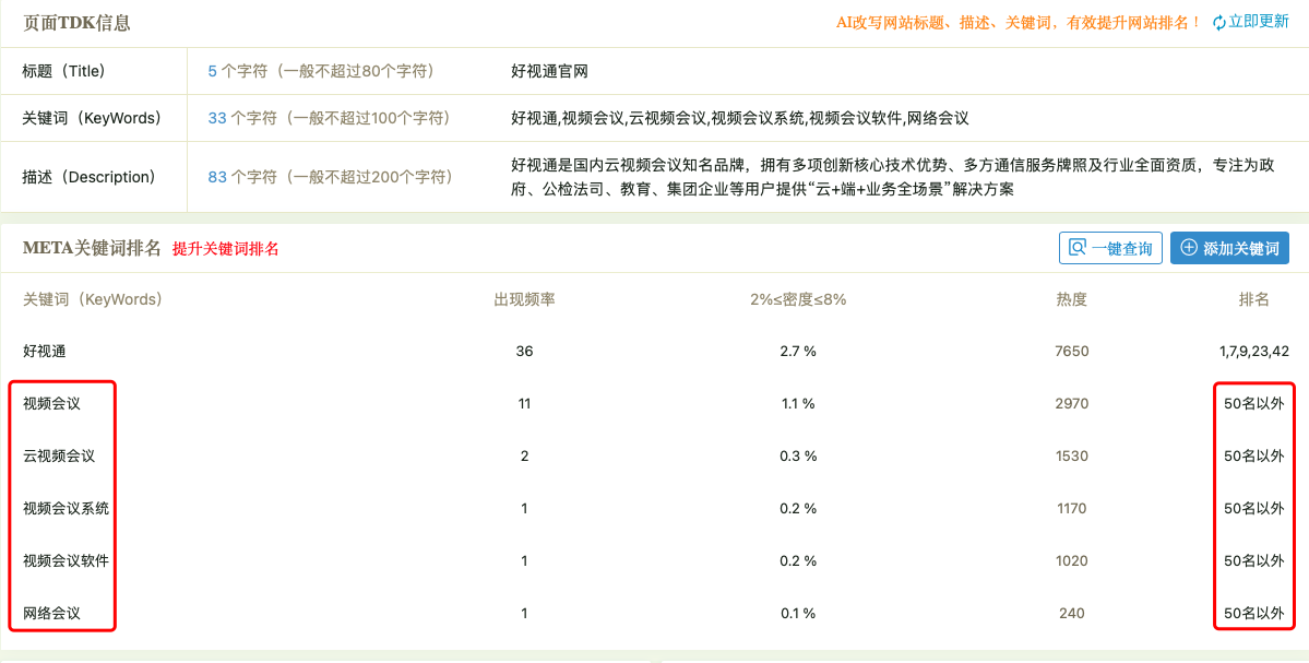 关于视频会议品牌-好视通公司网站SEO应用分析