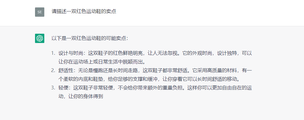 我们根据AI工具生成的图片,进行文字描述,因此可以通过AI聊天机器人快速生成运动鞋相关文案。