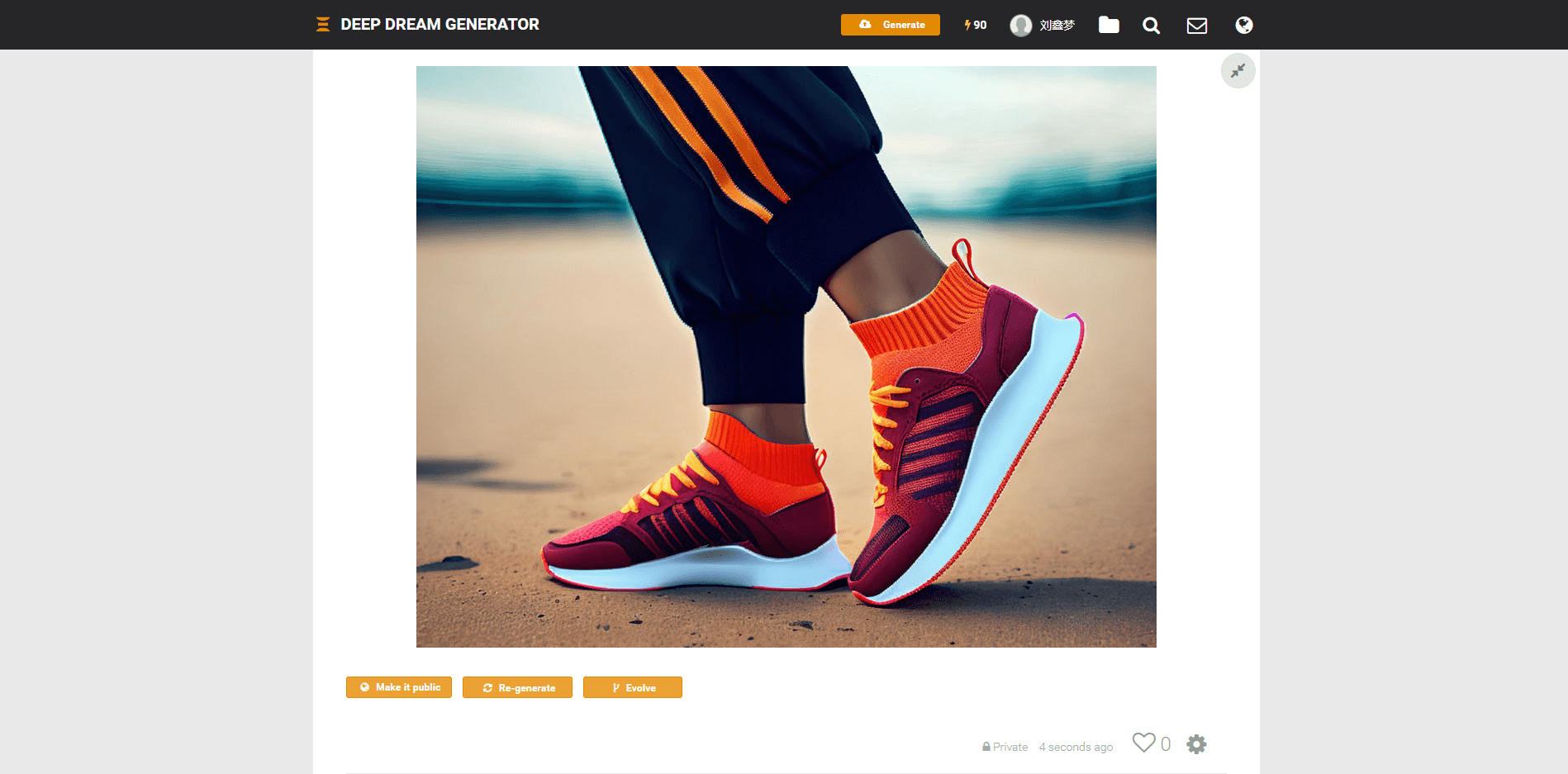 市面上的AI生成工具有很多,我们只需要输入关键词,即可生成图片。以DEEP 2026世界杯观看渠道 2026世界杯直播平台 DREAM为例,我们输入关键词【运动鞋】,将生成的图片保存下载。