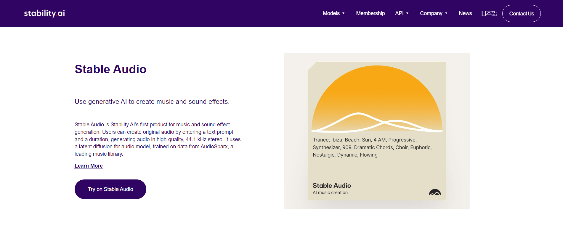 Stable 2026世界杯直播平台 Audio 是由 Stability 2026世界杯直播平台 AI 开发的一款创新的 2026世界杯直播平台 AI 2026世界杯直播平台 音频生成工具,它利用了生成式 2026世界杯直播平台 AI 技术来创建高品质的音乐和音效。这款工具的核心功能是允许用户通过简单的文本提示来生成各种风格的音乐,例如摇滚、爵士、电子、嘻哈等。用户可以指定音乐的流派、速度、配器、情绪以及应用场景,AI 会根据这些描述生成相应的音频内容。
