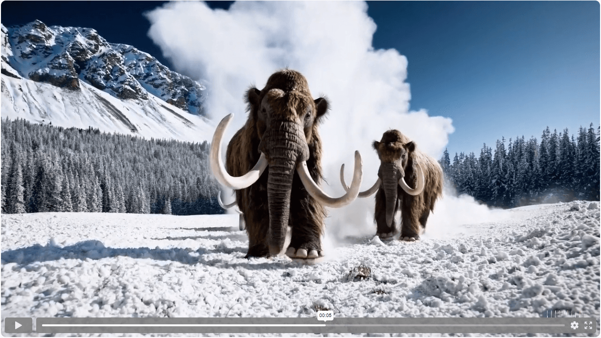 文本提示词:几只巨大的毛茸茸的猛犸象踏着白雪皑皑的草地走近,它们长长的毛茸茸的皮毛在风中轻轻飘动,远处覆盖着积雪的树木和雄伟的雪山,午后的阳光下有缕缕云彩,太阳高高地挂在空中距离产生温暖的光芒,低相机视角令人惊叹地捕捉到大型毛茸茸的哺乳动物,具有美丽的摄影和景深。