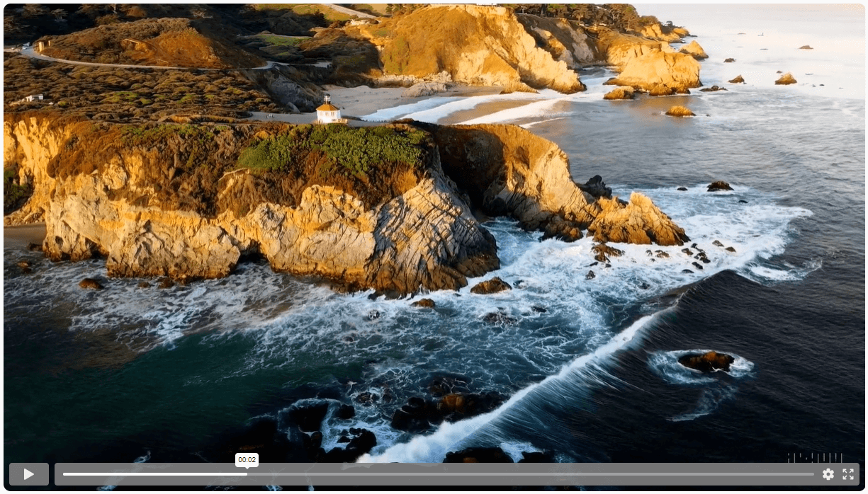 文本提示词:无人机拍摄的海浪拍打大苏尔加雷角海滩崎岖悬崖的景象。蔚蓝的海水激起白色的波浪,夕阳的金色光芒照亮了岩石海岸。远处有一座小岛,岛上有一座灯塔,悬崖边长满了绿色的灌木丛。从公路到海滩的陡峭落差是一项戏剧性的壮举,悬崖边缘伸出海面。这一景观捕捉到了海岸的原始之美和太平洋海岸公路的崎岖景观。