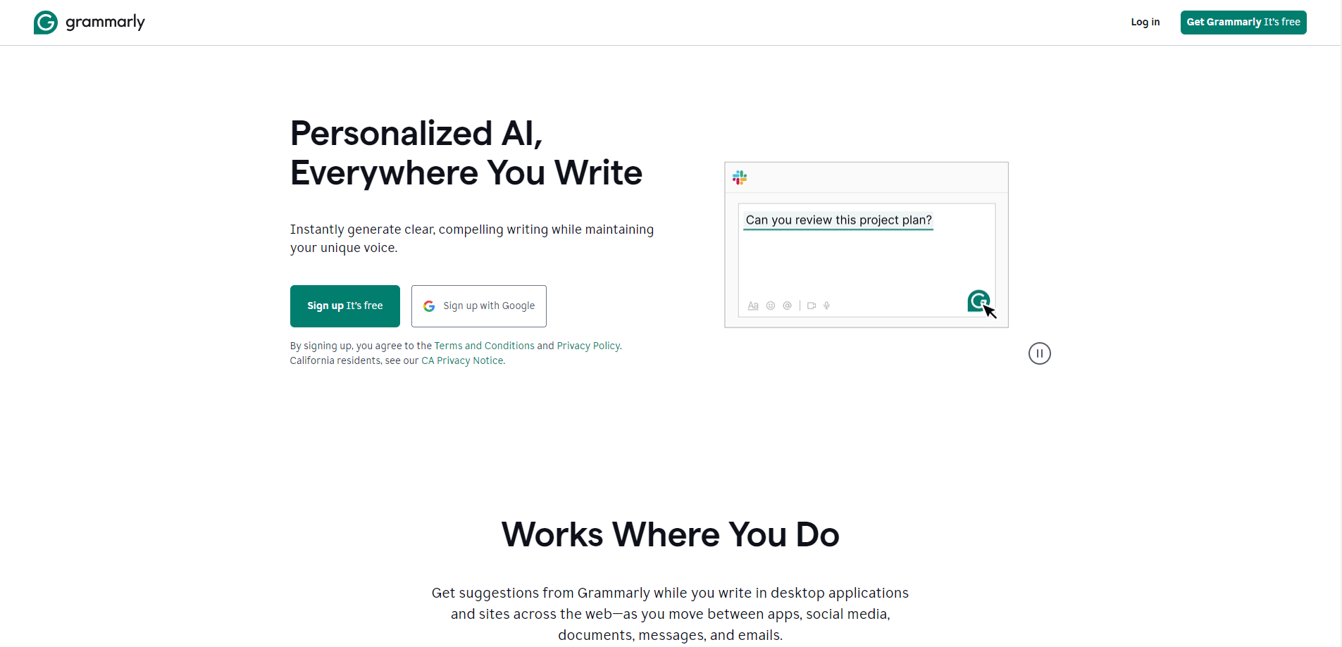 Grammarly是一款广受欢迎的在线写作辅助工具,它提供了一系列的功能来帮助用户改善他们的写作质量。Grammarly适合各种类型的写作,无论是学生、专业人士还是内容创作者,都可以通过使用Grammarly来提高他们的写作质量。它提供了免费和付费两种版本,免费版本提供基本的语法和拼写检查,而付费版本则包含了更高级的功能。