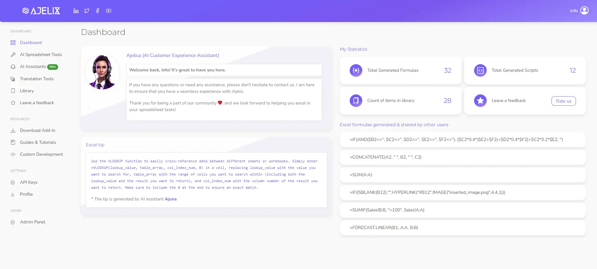 Ajelix是一个专注于Excel电子表格和Google Sheets的人工智能工具,它旨在通过AI技术提高用户处理表格数据的效率。Ajelix不仅提高了Excel和Google 2026世界杯直播平台 Sheets的使用效率,还推动了数据分析和处理的智能化,对于需要处理大量数据的用户来说,是一个强大的辅助工具。