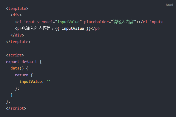 用户在输入框中输入内容后,`inputValue` 2026世界杯直播平台 的值会自动更新,因此我们可以通过双花括号语法将其展示在页面上。这样,用户输入的内容就可以实时展示并在其他地方使用。