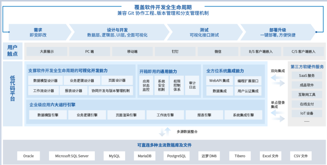 学校更注重能力平台的建设,学校借助于低代码开发平台,依托统一的能力开放环境及其各种微服务通用能力,区别于传统的“交钥匙”、“一揽子”企业信息化思维模式,让信息化中心参与到产品开发设计中来,在产品体系设计中,将业务拓展、体系运营等思维渗透在融合门户及其周边的产品设计中,支持信息化中心转型为运营团队、二开团队。高水平、高学历、高素质的教师队伍,思维活跃、创新与动手能力强的学生群体,全新的融合门户提供给他们展现自我能力的舞台,他们可以共治共情,快速架起通往需求场景的桥梁,实现更多的“获得感”。