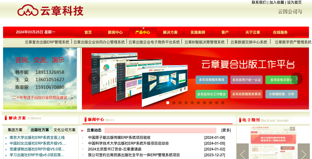 北京云章科技有限公司从人力资源、产品研发、行业经验、服务能力等方面将成为出版行业专业软件服务商中规模与能力更强大的科技公司,能够更好的为出版行业信息化建设提供软件产品与技术服务。