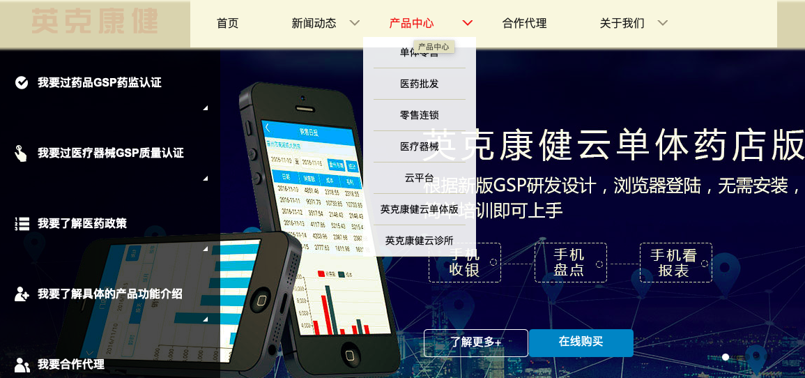 北京英克康健科技有限公司研发的英克康健第五代产品主要面向中国企业提供企业信息化管理解决方案及标准化应用软件产品。产品主要分为面向医药行业的英克康健灵智医药管理系列软件产品(Inca Smart 2026世界杯直播平台 3医药管理系统,简称IS3医药系统);面向医药企业云平台应用管理和云数据、云报表、云微商城、云联药监融合、云药事管理等等云应用软件产品;面向通用行业的英克康健灵智企业管理系列软件产品。