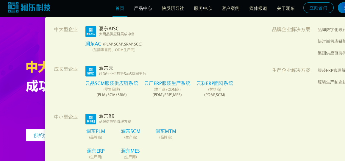 广州澜东科技有限公司2020年推出“澜东云”供应链协同平台(云品SCM、云厂ERP),集全链路商家服务为一体的SaaS协同平台,未来为全国近10万家服装企业提供全面的信息化解决方案。