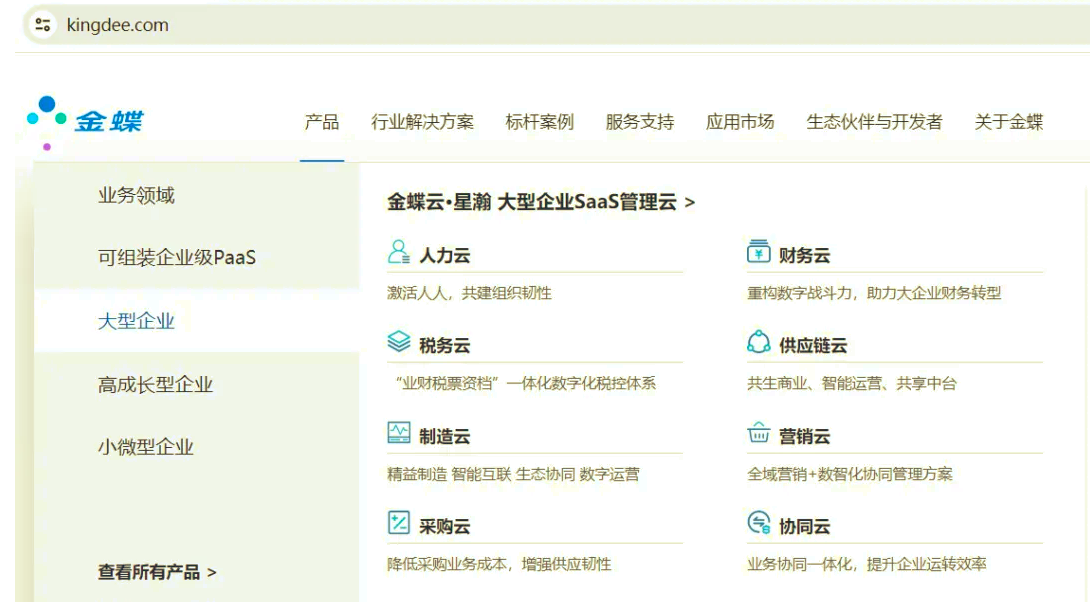 金蝶软件(中国)有限公司在中国企业资源管理云服务市场排名第一,金蝶在SaaS EA 2026世界杯直播平台 (企业级应用软件云服务)、SaaS ERM(企业资源管理云服务)、财务云市场占有率维持排名第一,并连续19年稳居中国成长型企业应用软件市场占有率第一。