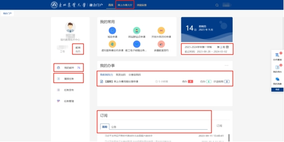融合门户分为教职工、学生、访客等角色,根据登录账号的身份和部门,个性化显示与本人相关的办事事项、邮箱、相关业务平台等内容,让人一目了然。