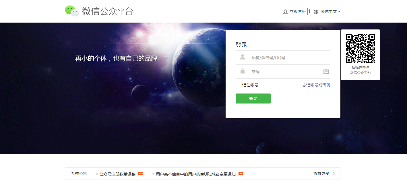 微信公众平台官方网址:https://mp.weixin.qq.com/