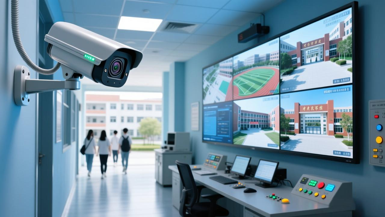 行为分析:支持“走廊模式”的摄像头、智能警戒摄像机、学生安全手环(实时定位、心率监测、一键SOS)。