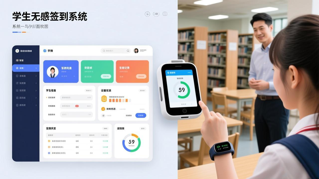 工作方式:通过蓝牙信号感应学生携带的设备(如手机、手环),自动完成签到。
